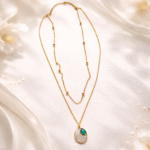 Elevate your everyday elegance with the Celestial Grace Layered Pendant. This dainty dual-layer gold-tone chain features delicate bead accents and a central oval pendant adorned with a hint of turquoise sparkle. Lightweight, refined, and finished with an anti-tarnish coating, it’s the perfect balance of charm and sophistication—ideal for both casual wear and special moments.